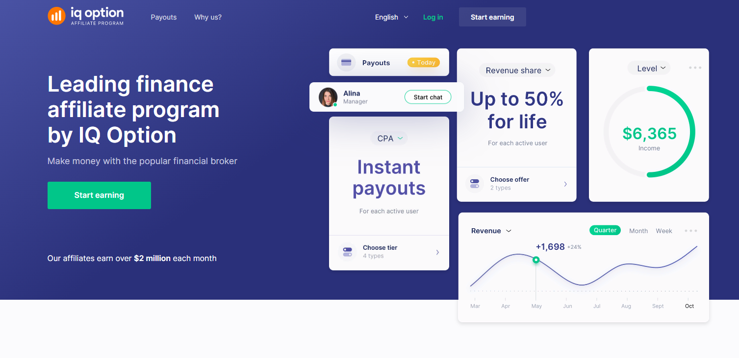 The affiliate program is targeted at clients who wish to be part of the IQ Option team. By becoming a member of this program, you'll be able to earn profits for traders attracted to the platform. More information can be found on the website under the Affiliate Program section.
