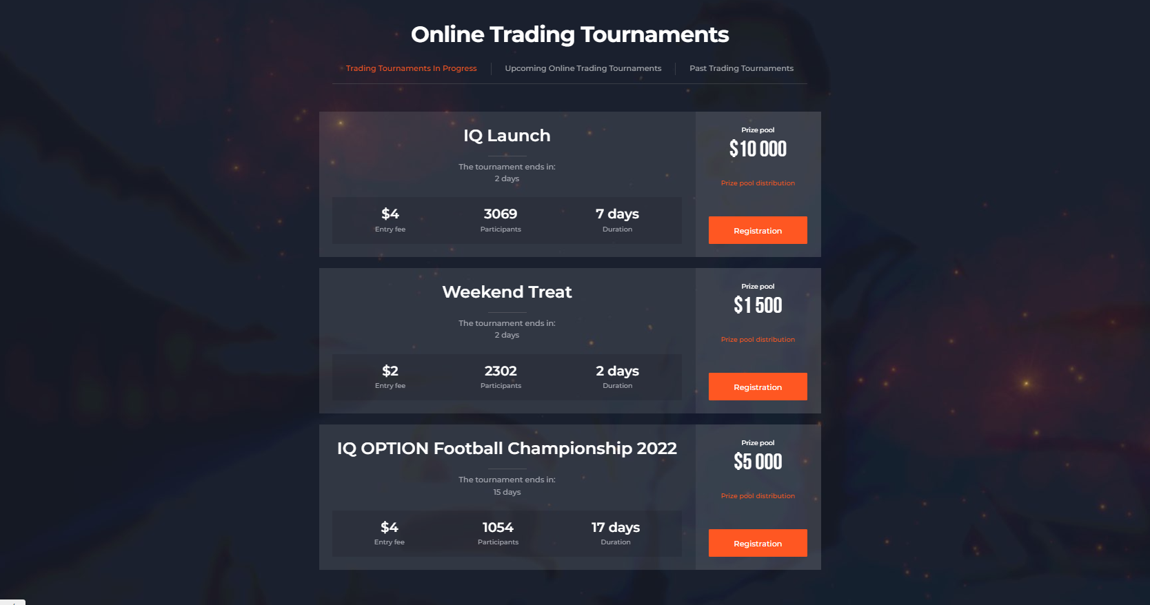In addition to its primary trading function, IQ Option hosts tournaments and other broker activities.